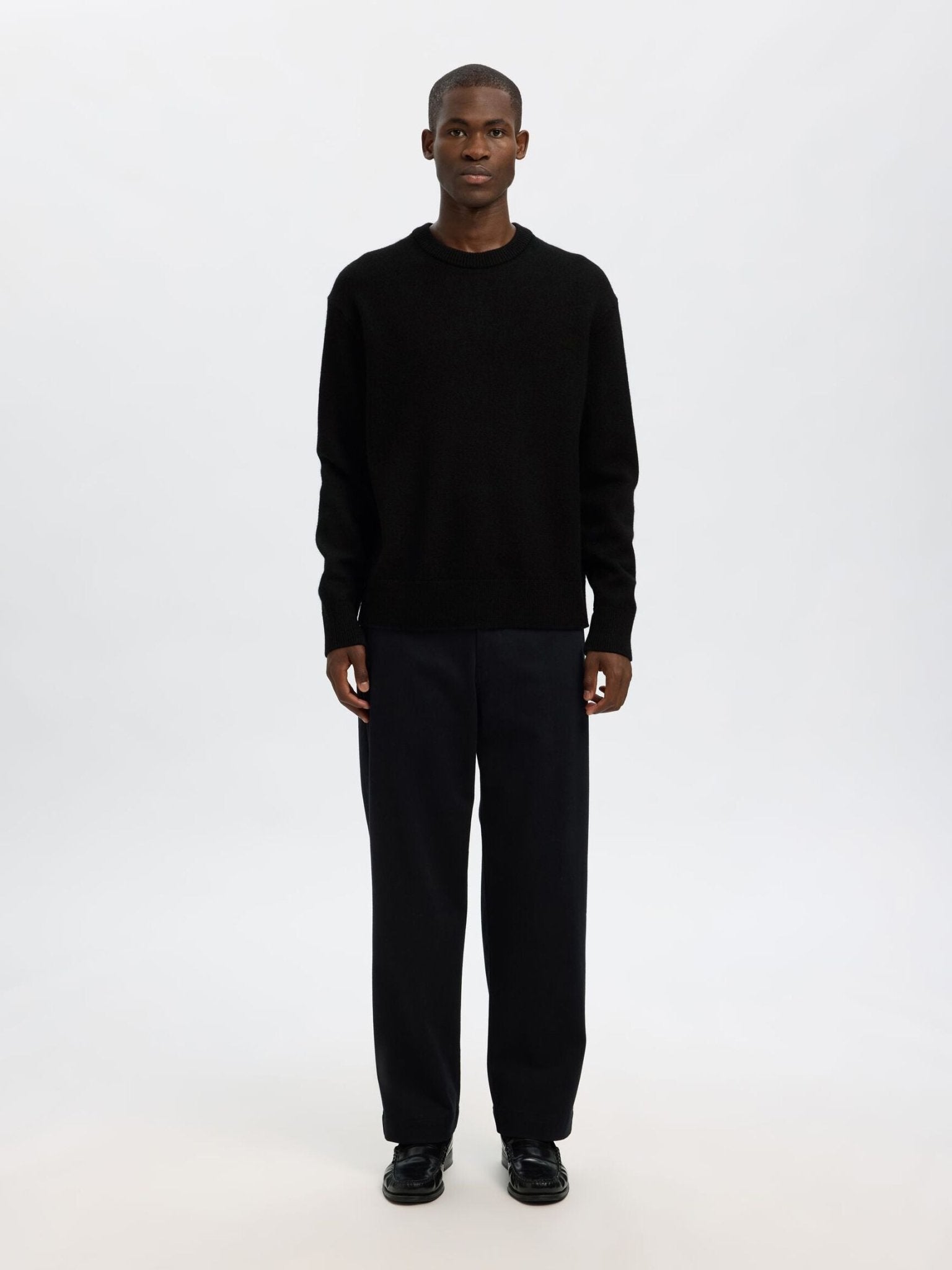 SELECTED - 100% WOOL KNITTED JUMPER - Black