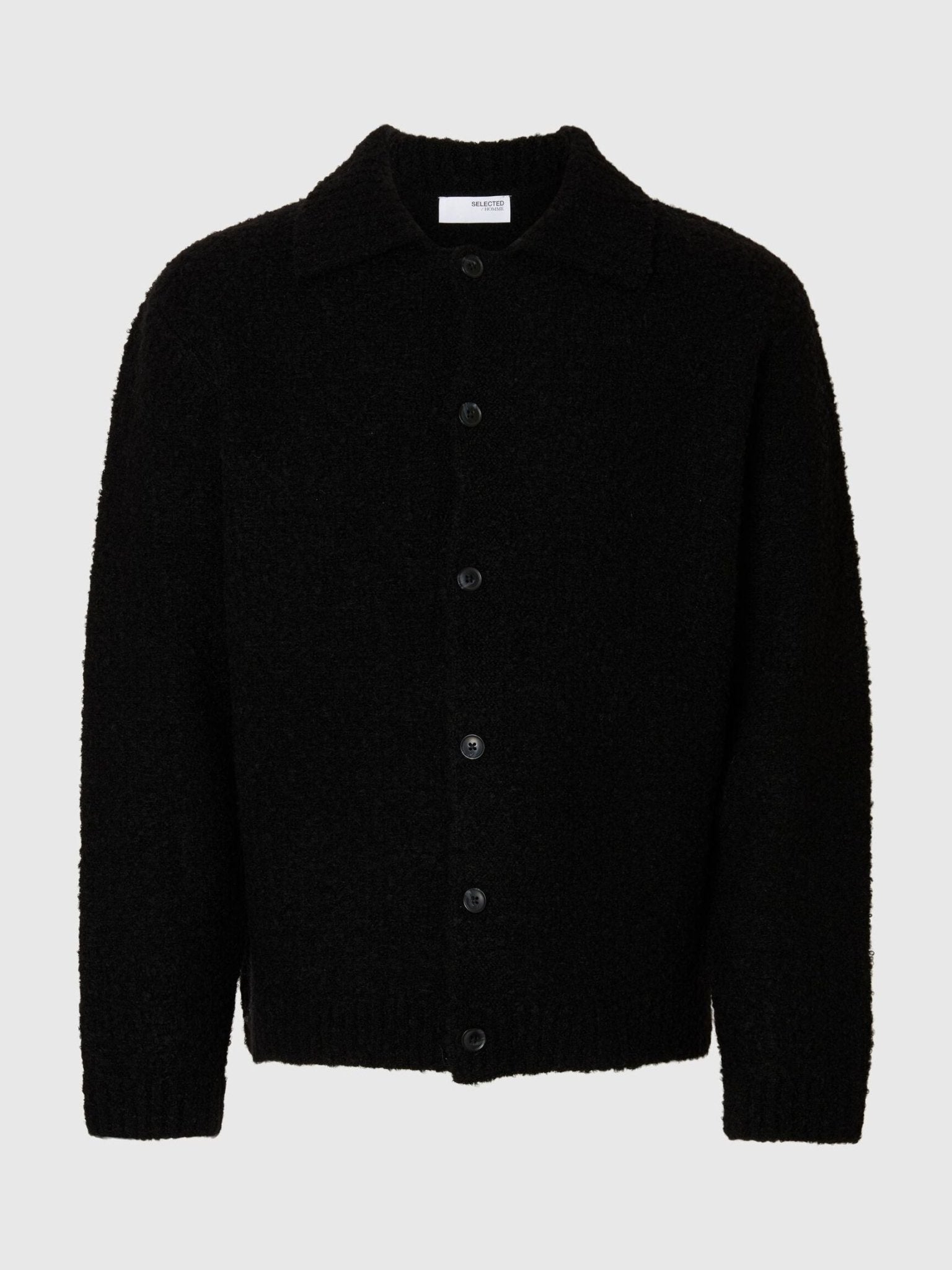 SELECTED - WOOL BLEND KNITTED CARDIGAN - Black