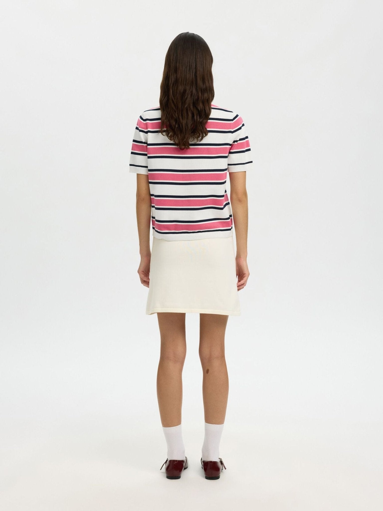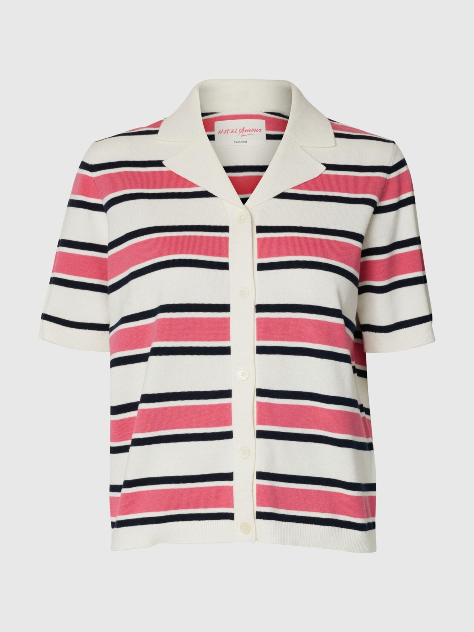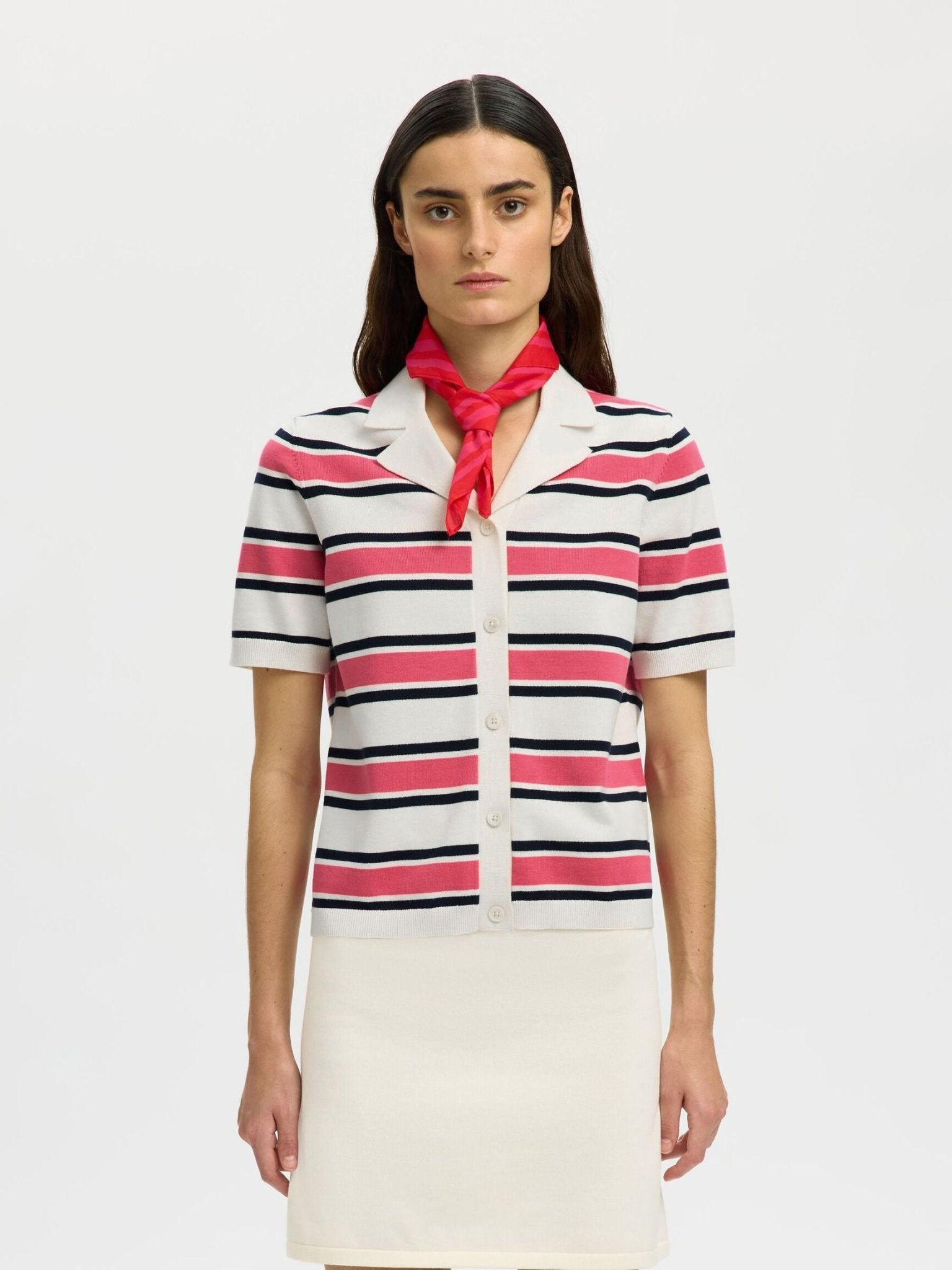 Selected Femme - SHORT SLEEVED KNITTED POLO SHIRT - Stripes