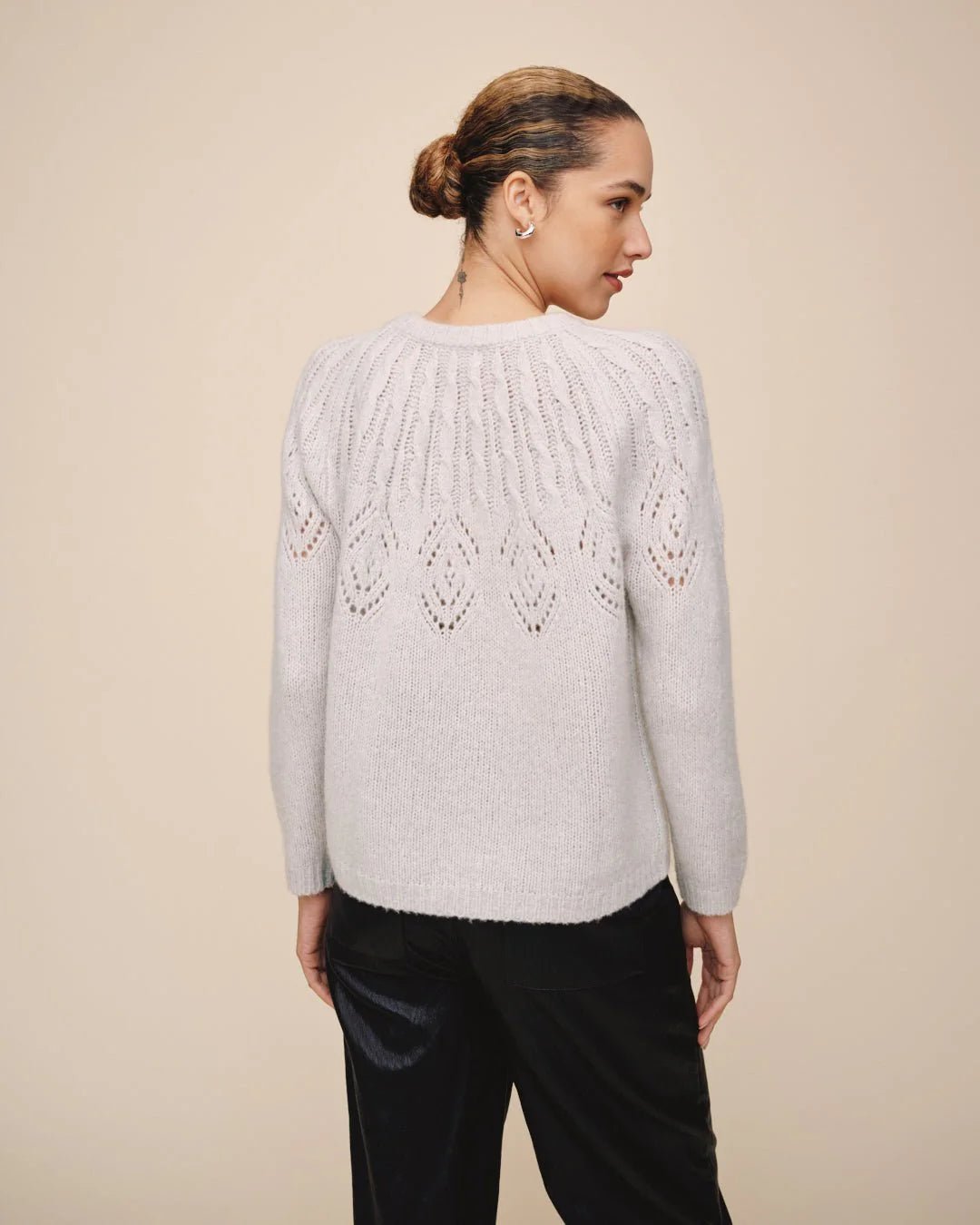 Embrace understated elegance with this Bella Dahl essential. The relaxed silhouette drapes with effortless grace, while the refined cable knit texture adds visual interest without compromising on wearability. Constructed from a luxurious wool-cashmere blend, this sweater delivers exceptional softness and breathability in a lightweight construction. The crew neckline and extended sleeves provide a timeless foundation for layering or standalone wear, making it an indispensable piece for transitional seasons and beyond.