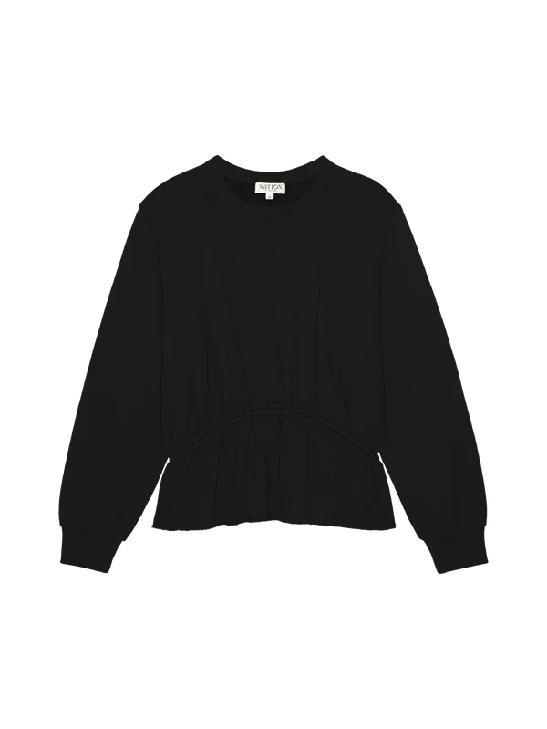 The Sissy Sweatshirt delivers effortless style through thoughtful design details. Constructed from pure cotton French terry, this boxy cropped silhouette features drop shoulders and refined ribbed accents that provide subtle definition. Front tunnel ties allow you to adjust the waist for a personalized fit, while raw edges contribute to its contemporary aesthetic.