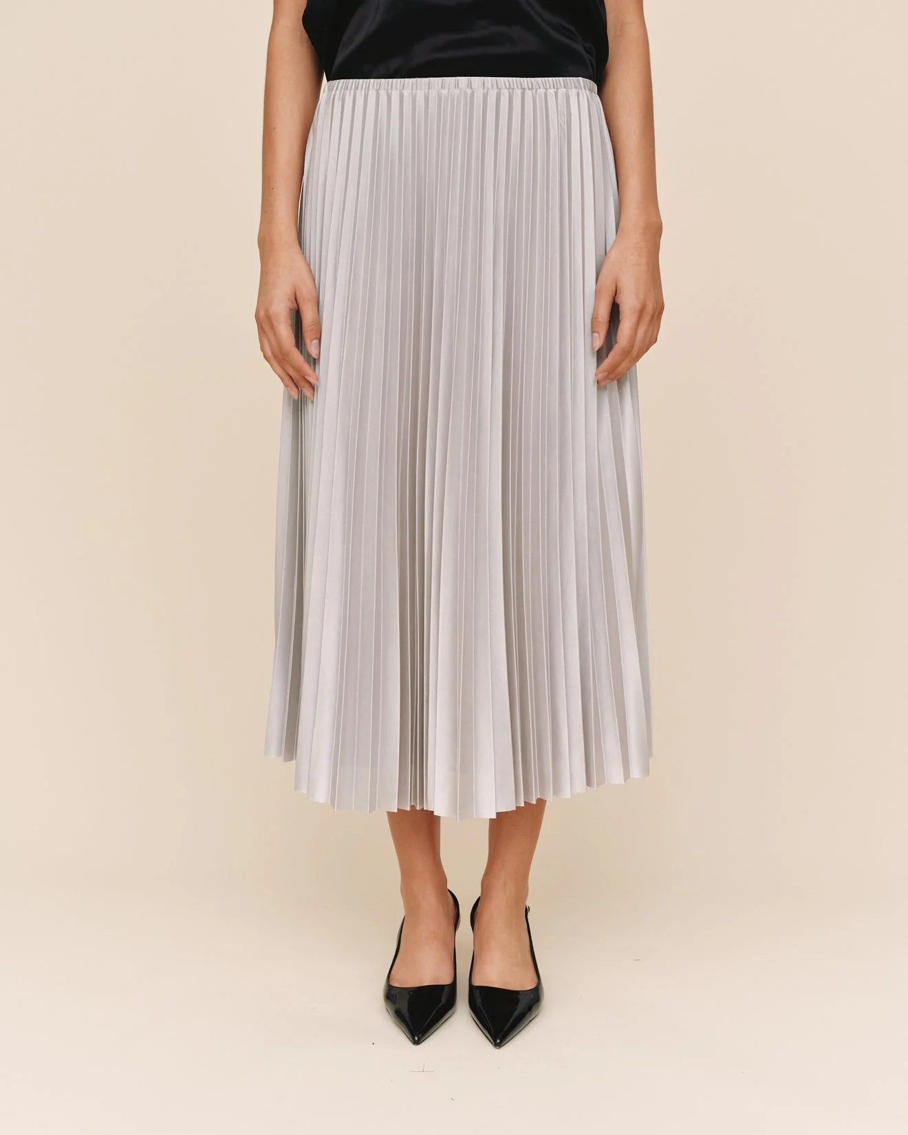 Crafted for understated sophistication, this maxi skirt features precisely pleated panels that create graceful movement and visual depth. The elongated silhouette flatters the frame with refined proportions, while the elastic waistband delivers comfort without compromising elegance. Luxurious draping flows effortlessly with each step, making it an ideal choice for those seeking timeless style with contemporary ease.