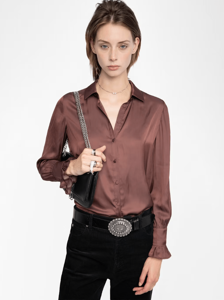 T-shirt blanc femme en coton Zadig&Voltaire, manches courtes, tee-shirt iconique Henley, imprimé au dos.