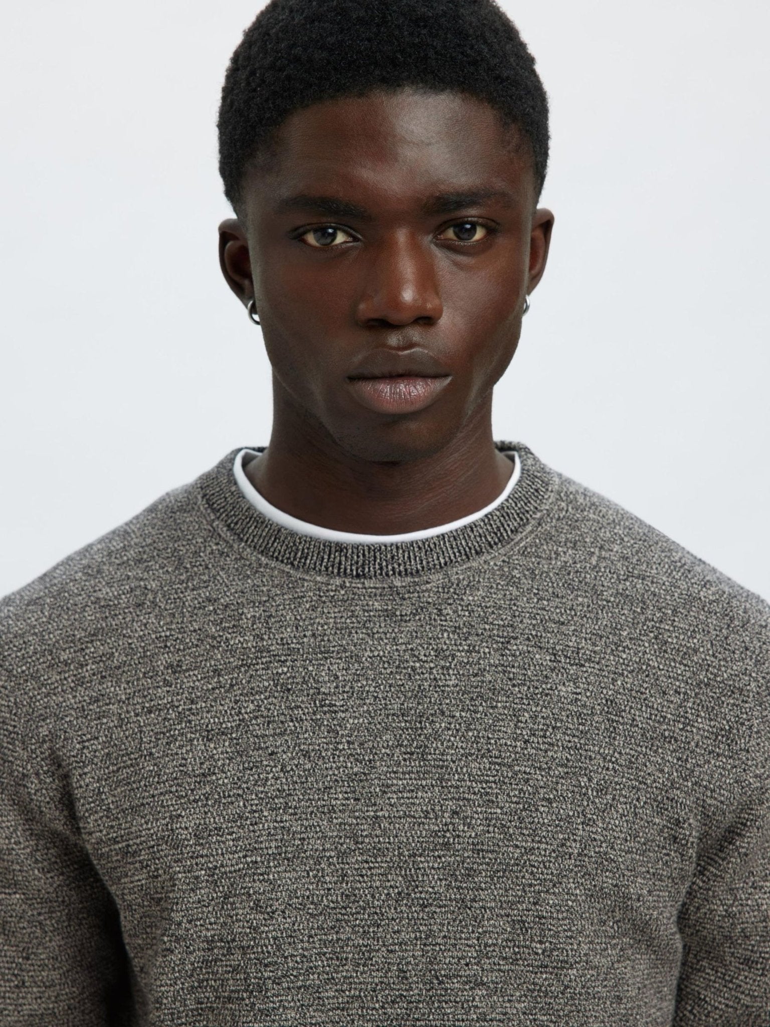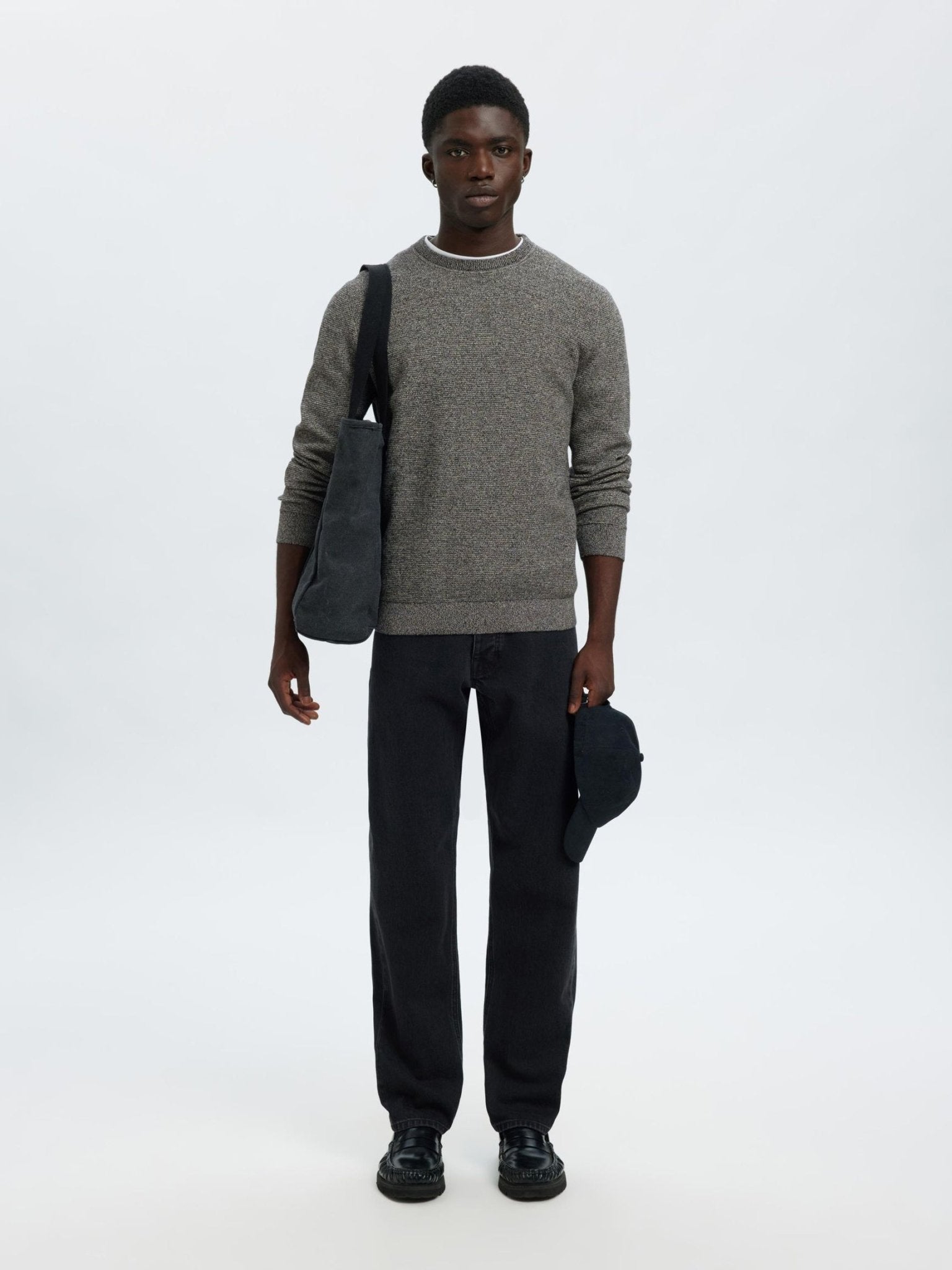 SELECTED - 100% COTTON CREWNECK JUMPER - GREY