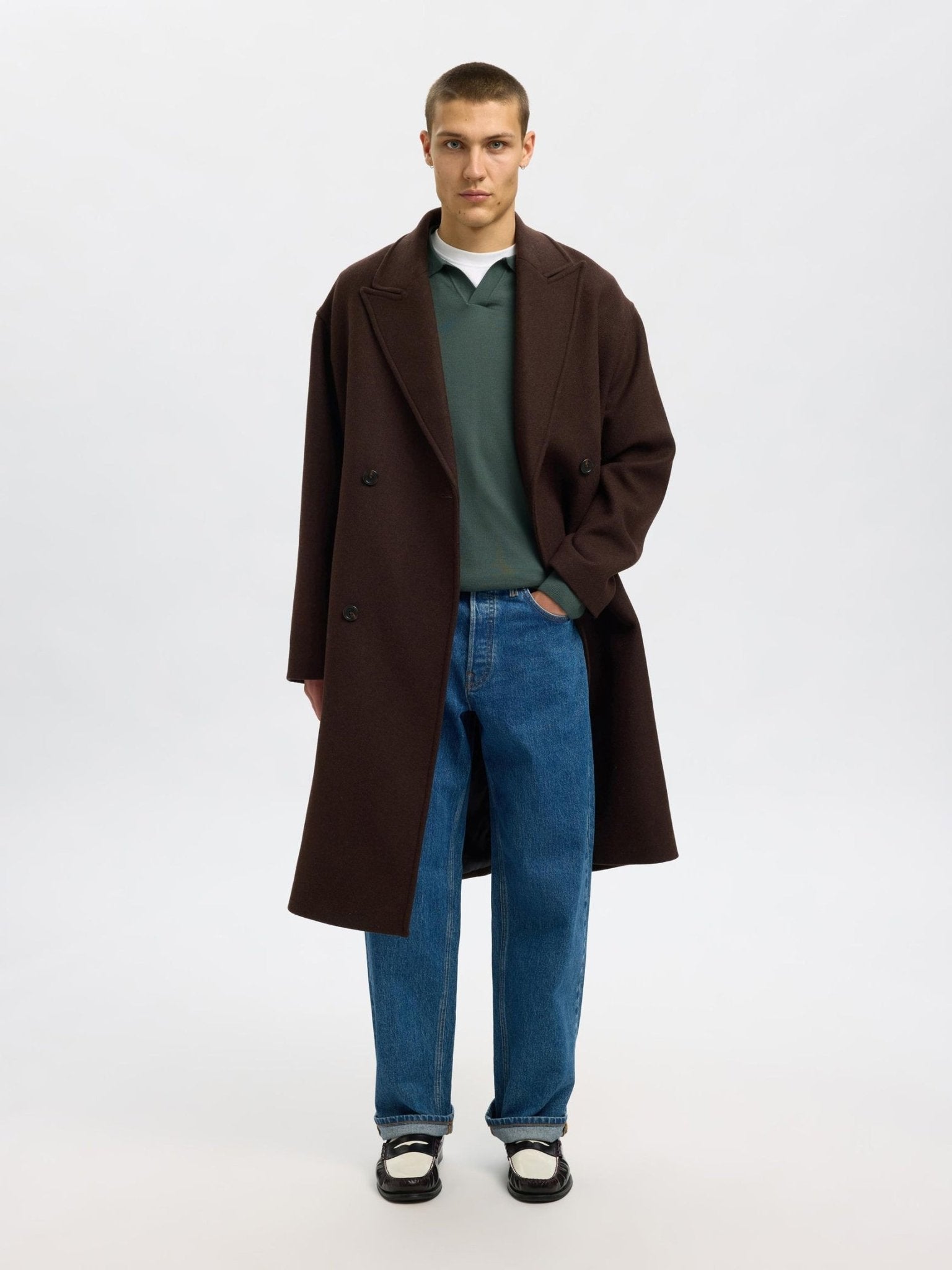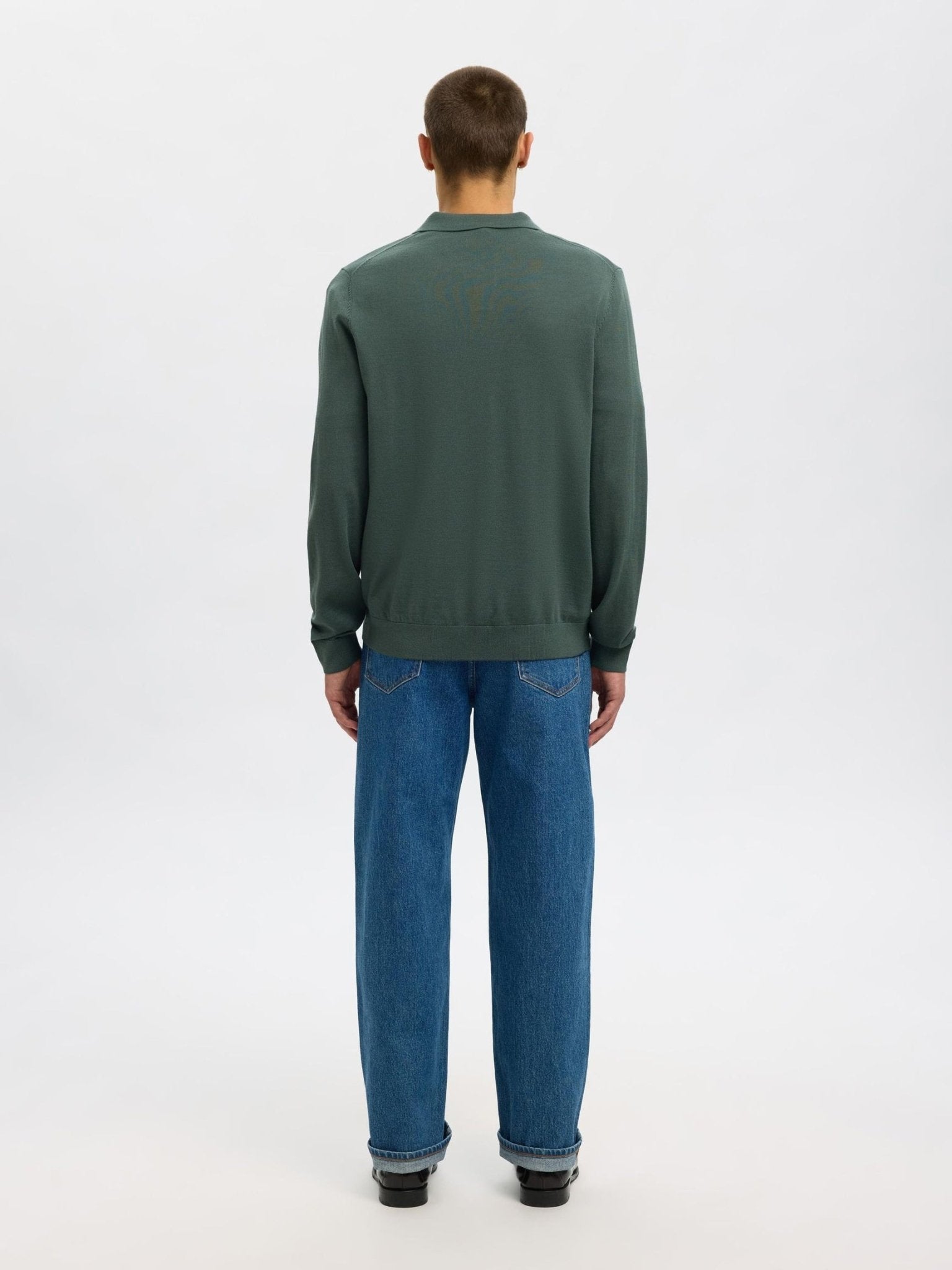SELECTED - 100% MERINO WOOL KNITTED POLO SHIRT - Forest