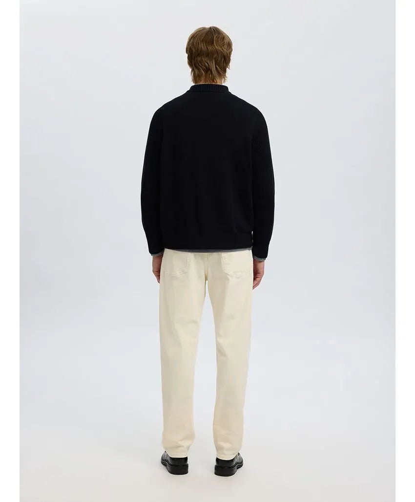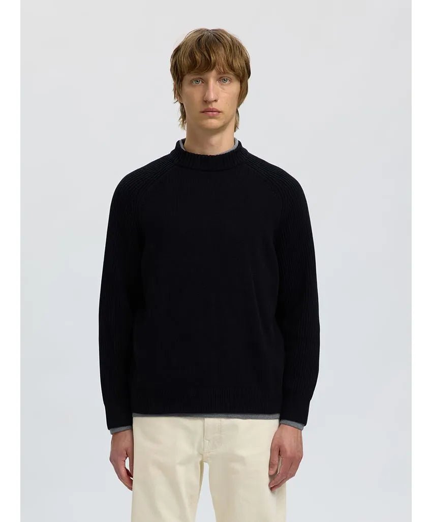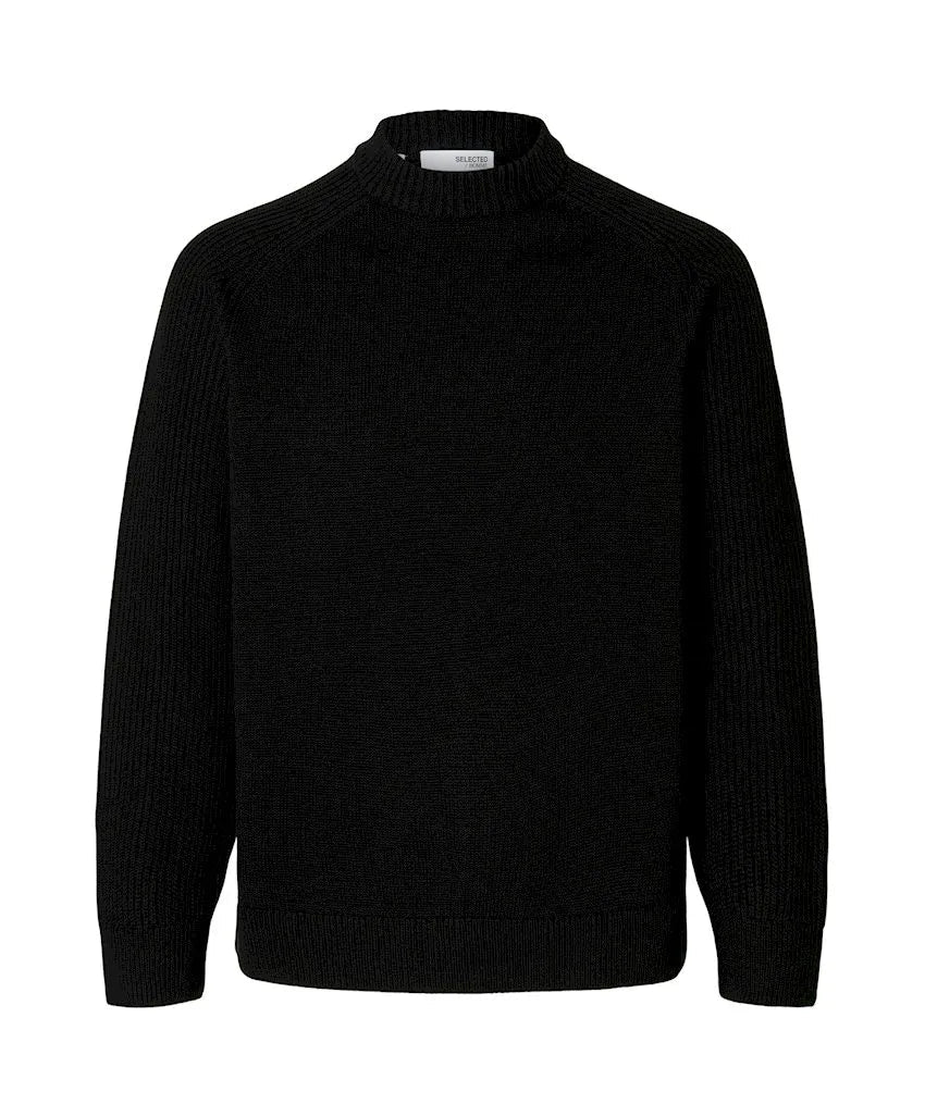 SELECTED - Long Sleeve Relaxed Fit Rib Mock Neck Knit - Black