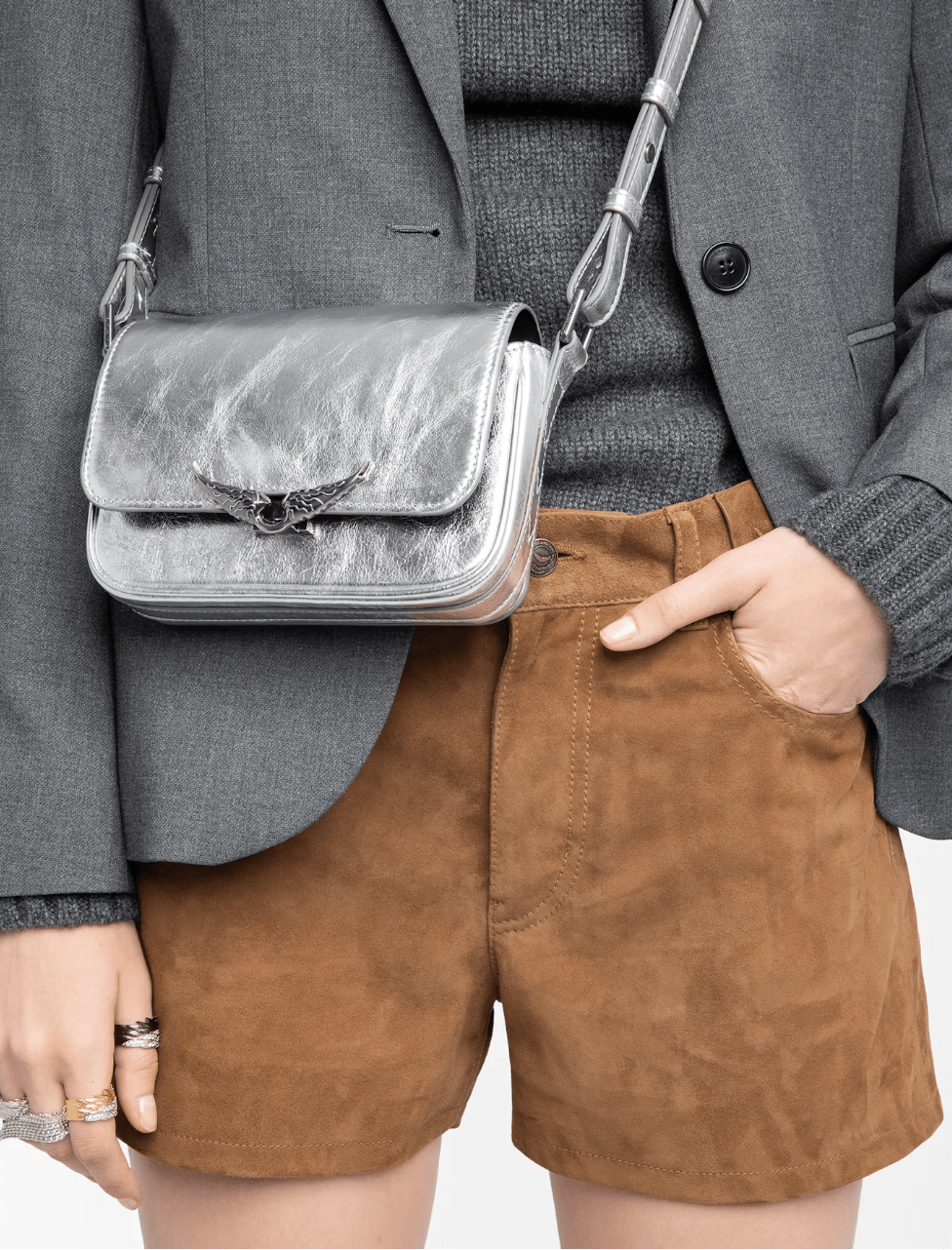 This refined leather bag showcases a lustrous metallic vintage finish that elevates any ensemble. The adjustable, removable strap transitions effortlessly between shoulder and crossbody wear, while the iconic winged clasp and discreet interior pocket complete the design. A compact yet sophisticated accessory for the discerning collector.